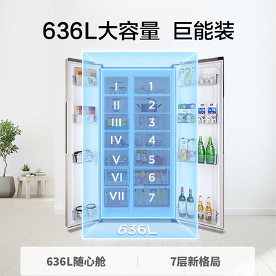 636升的大容量空间,科学分区,分类存放,可容纳批量食材。配合节能省电、静音运行的特点,符合家用标准。