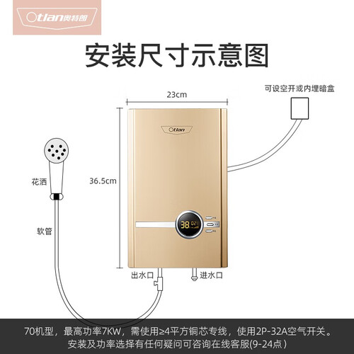 奥特朗 小巧不占空间电热水器