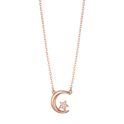 精致独特的星月造型吊坠,寓意纯洁与希望,颇具设计感。其中镶嵌闪耀钻石,佩戴于颈间,尽情释放璀璨夺目的光彩,闪亮耀眼。