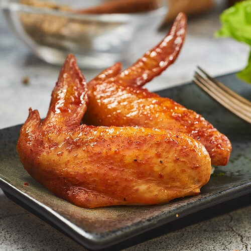 在鸡翅的两面进行双面烘烤,激发出鸡肉内部的油脂,紧实包裹着内部的鸡肉。选取鸡翅中进行制作,肉质肥厚鲜美。