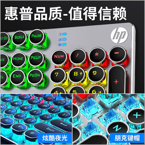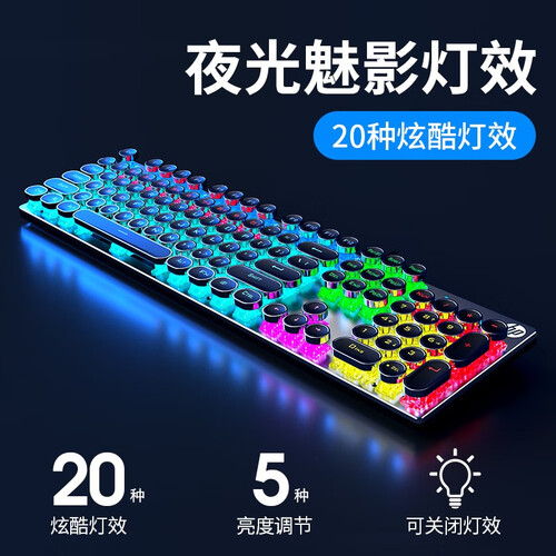 精巧美观的外形设计,别具匠心,让你迷醉在指尖。采用复古电镀朋克键帽,高频率抗击打字符,耐磨不褪色,使用寿命更长久。