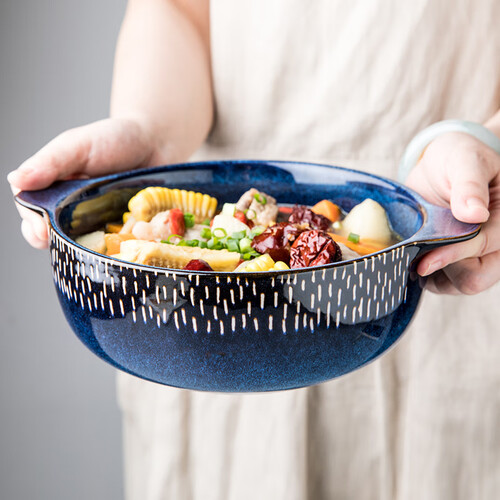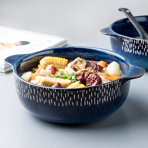 浓烈的复古灵感设计,釉色浑然一体,同时也有不同的色彩肌理,厚实耐看,更有流星纹饰,巧妙融入深蓝背景,点亮氛围美感。