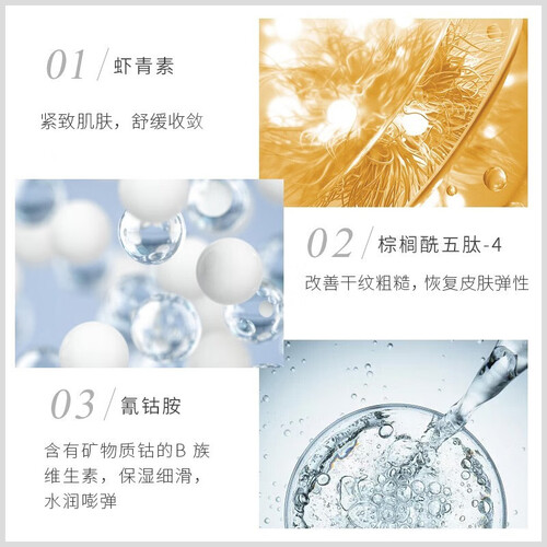 虾青素精华,双效修复,改善粗糙,柔嫩细滑,恢复弹润,紧致饱满,莹润光泽。