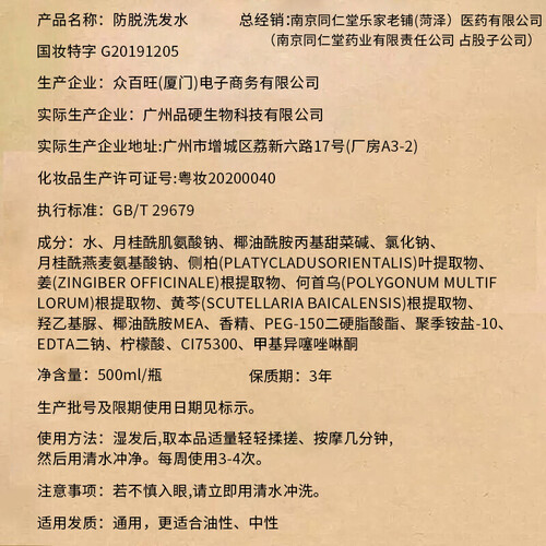 南京同仁堂防脱洗发水