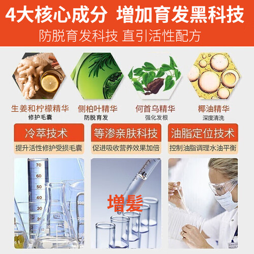 侧柏叶、何首乌等植物精华修复干枯发质,深入滋养发根,有效防止脱发。