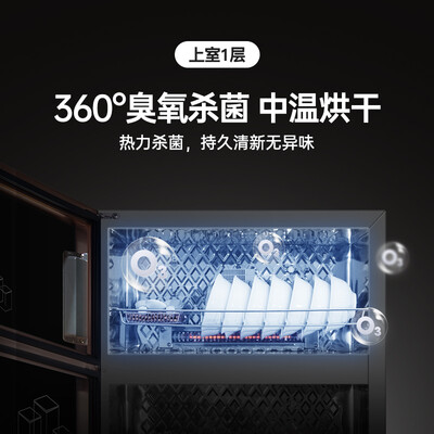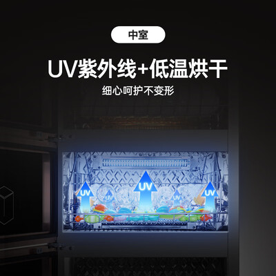 专设婴儿用品层架,奶嘴、玩具都能放入,贴心呵护孩子健康。UV紫外线技术,细心呵护碗筷不变形。