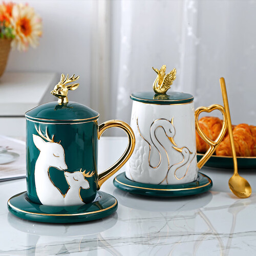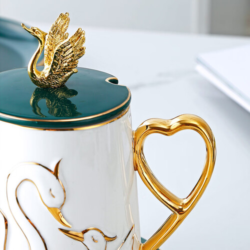 咖啡杯配备了一个留口设计的杯盖,精巧的留口设计能够便于勺子在杯中的放置,十分精巧且不占空间。