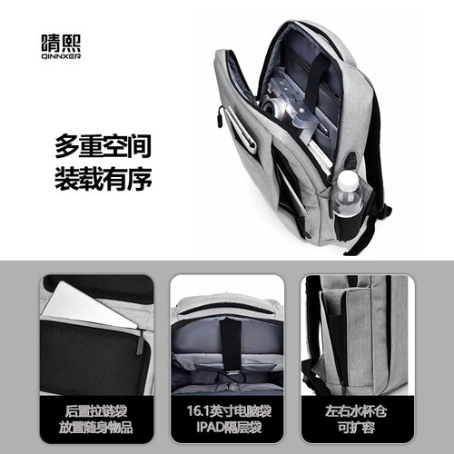背面呈蜂巢网状设计,增加透气性,长久背负也不闷热。内部空间多层次的设计,储存方便,多物体储存也可以整齐有序。