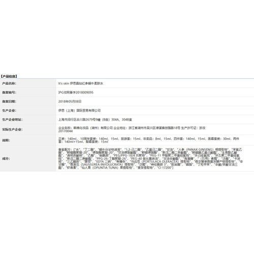 伊思 补水保湿红参蜗牛化妆水
