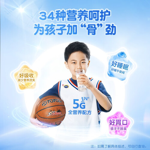 选用天然优质乳粉,专为儿童定制。优质营养双重吸收,轻松消化,不易上火。早晚各一杯热牛奶,促进宝宝成长,提升免疫力。