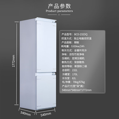520CM超薄机身设计,轻松嵌入橱柜,节省居家空间。搭载加西贝拉变频压缩机,运行稳定,低耗节能。