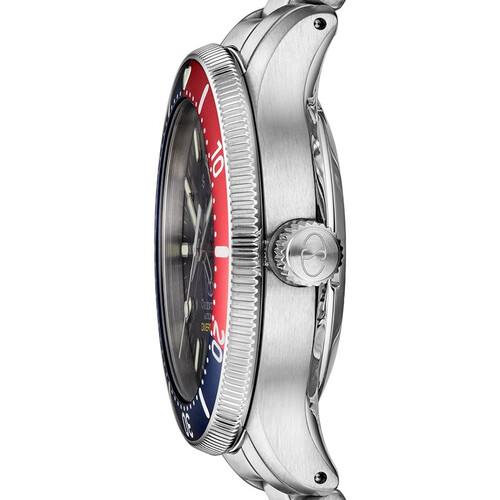 单向旋转计时表圈,方便潜水时判断氧气瓶耗量。夜光涂层,在昏暗光线下,也能轻松读取时间,更加人性化。