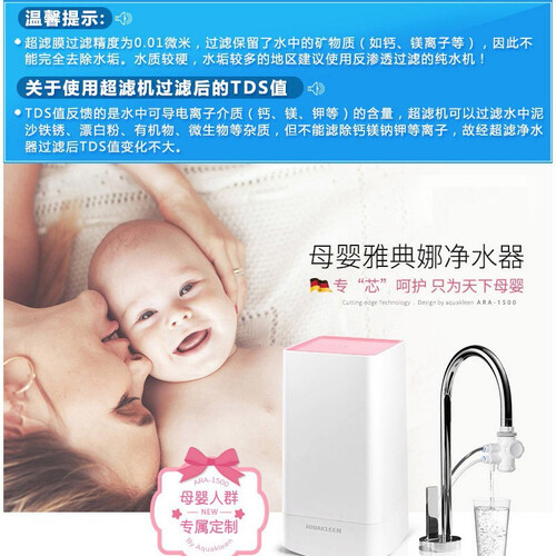 搭载进口三菱超滤膜,0.01微米过滤精度,可滤除99.99%细菌。采用食品级ABS材质打造,安全无毒,母婴使用更放心。