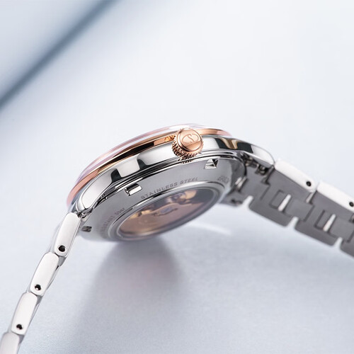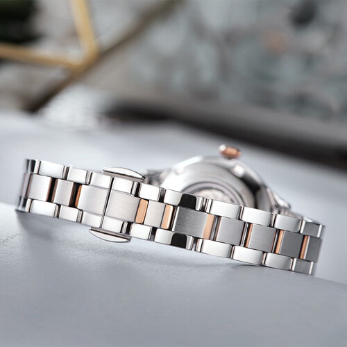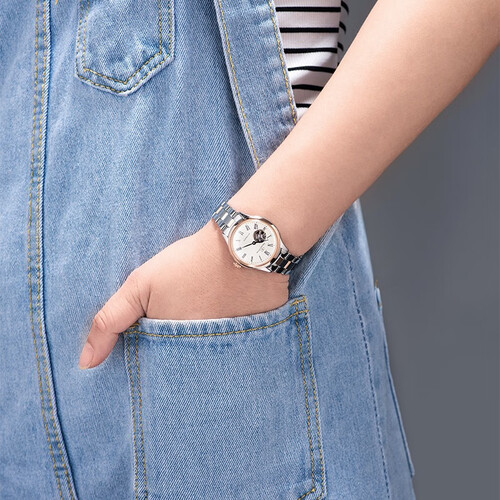 这款简约罗马数字刻度手表,外观时尚大气,更好的彰显出女士典雅的气质。背透表底设计,助你清晰感受到机械运转的韵律之美。