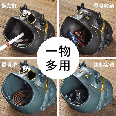 大嘴牛造型设计的烟灰缸,富有创意,兼具美观性与实用性。它还有着手工打磨的底部,平整耐磨损,可平稳放置。