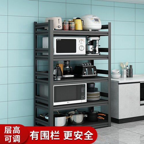 采用国外不锈钢拉丝工艺,光滑亮洁不易生锈。层板之间,高度可调,方便使用。带有围栏,东西不易掉落。