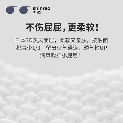 采用日本3D热风面层,带来轻柔呵护,保护娇嫩的肌肤。加宽吸收芯体设计,吸收速度与渗透速度更快,减少尿湿烦恼。