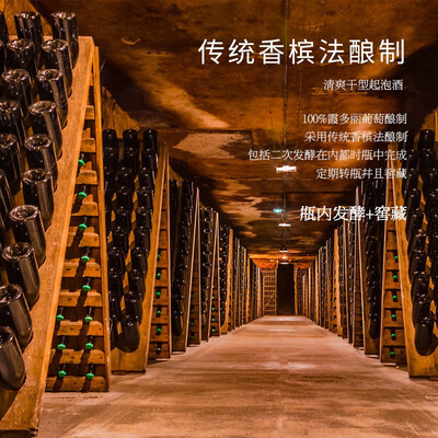 传统香槟法酿制而成的起泡酒,将不同年份和成熟度的原酒混合在瓶中进行二次发胶。瓶口橡木塞,防止灰尘进入。