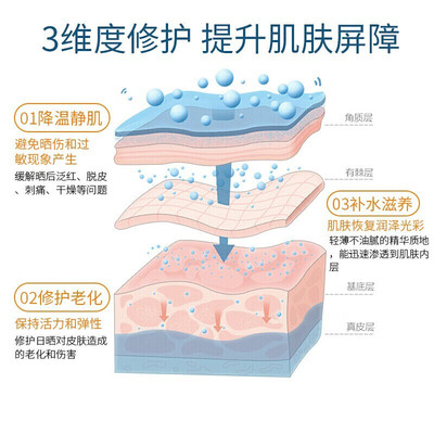 4重保护,可以抵御紫外线、滋润保湿等,肌肤更舒适。蕴含红没药醇、牛油果树果脂等植物精华,缓解晒后肌肤的不适。