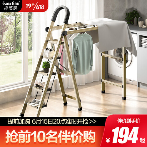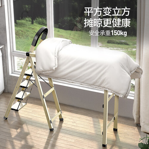 这是一款两用的晾衣梯,拥有6根晾晒横杆,满足全家人的晾衣需求。折叠后仅5.5cm厚度,可灵活收纳,随便角落都能放置。