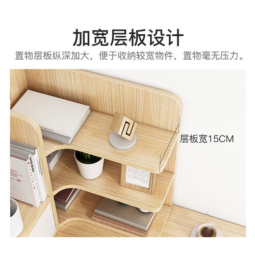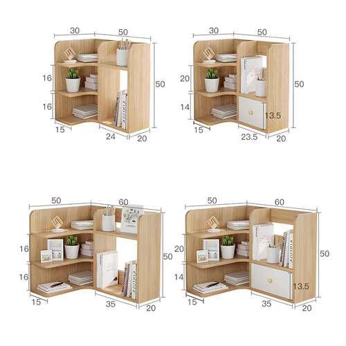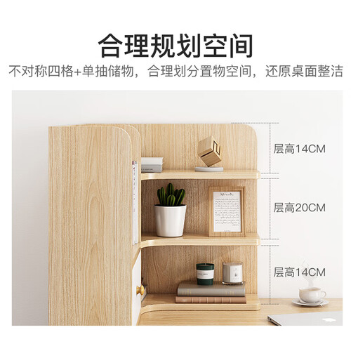 转角设计,合理利用桌面的每一寸空间,纵深加大,收纳大体积物品。加厚背板防潮防掉落,自带抽屉,可装细小物品。