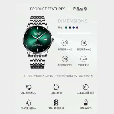 渐变绿色表盘,无论每个角度观看都呈现美轮美奂光泽,入眼瞬间让你心动不止。一体化成型表壳,浑然天成不留缝隙。