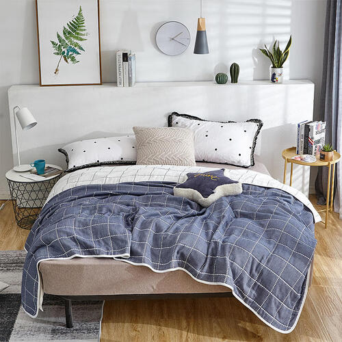 精心挑选了40股全棉制作,有效降低了毛毯的缩水率,更加耐用。平行交错的个性花纹,简约却不单调。