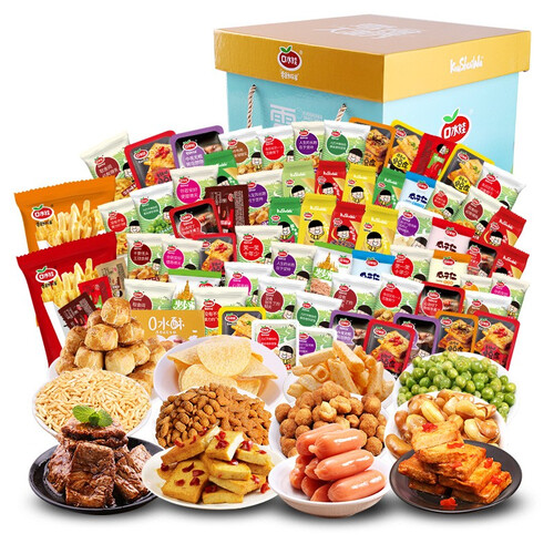 这款大礼包里包含60种左右的小零食,多种口味尽在一处,如何让人不心动。干果、薯片和卤货统统有,吃得尽兴是关键。