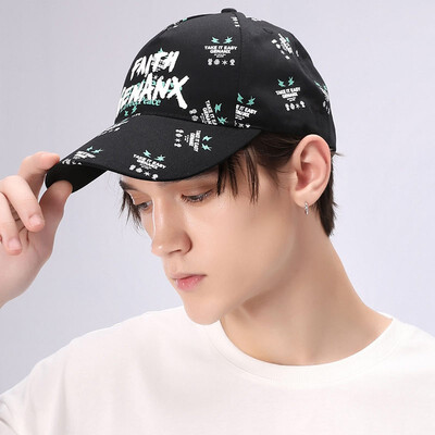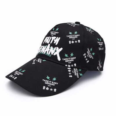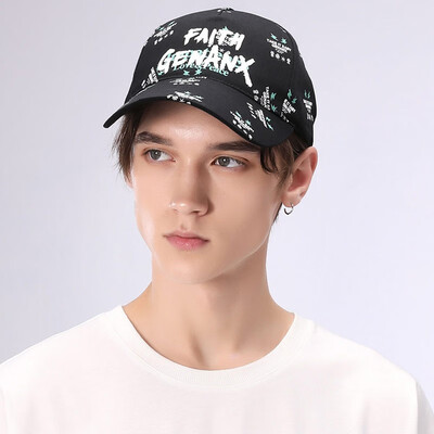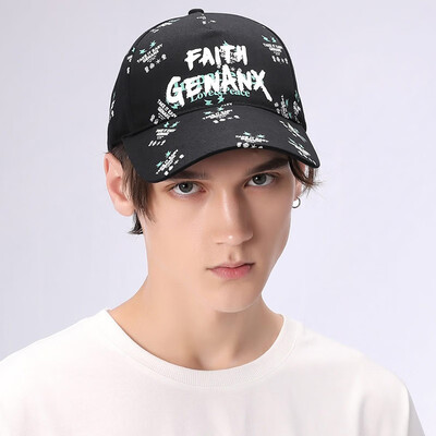 以纯黑色的鸭舌帽为底,通过大面积的涂鸦设计,鸭舌帽佩戴更有不羁范儿。