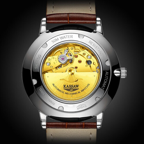 内置全自动机械机芯,稳定运行,易于随时查看时间,便利生活。搭配棕色表带,复古气息十足,圈粉商务老总。