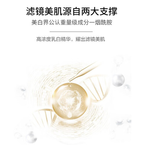 蕴含烟酰胺成分,可减少黑色素的生成,给予肌肤白嫩透亮;配以玻尿酸成分,补水保湿,焕活肌肤年轻态。
