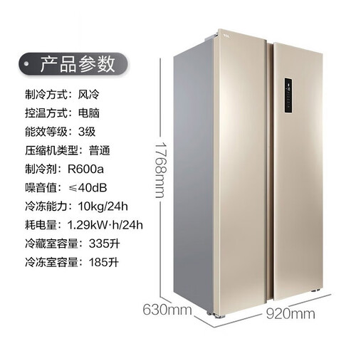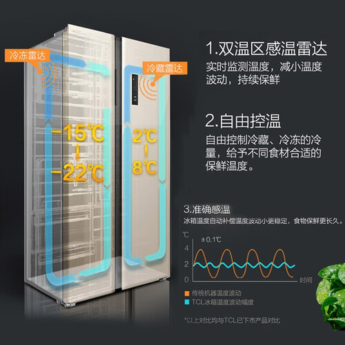 TCL 纤薄双开门冰箱