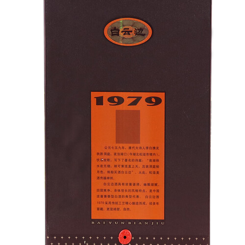 这款白酒是1979年的纪念酒,收藏价值高,适合自我收藏或者送人。精选高粱、小麦和水为原料,固态发酵,白酒安全卫生。