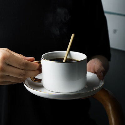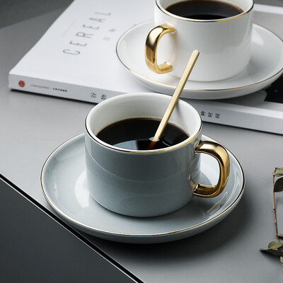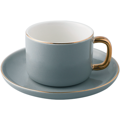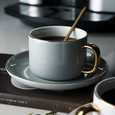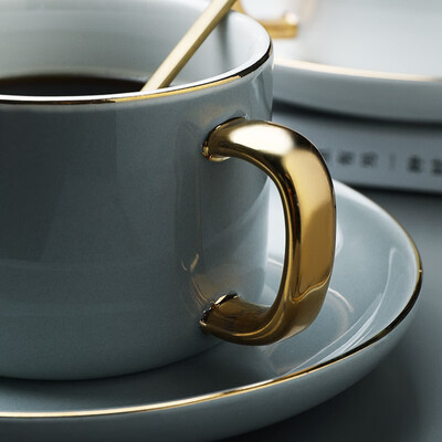 灰色为基调,用金边加以修饰,减少沉闷感,反而多了些许低调华丽的视觉感受。高温烧制陶瓷而成,质地细腻,杯壁不易挂污。