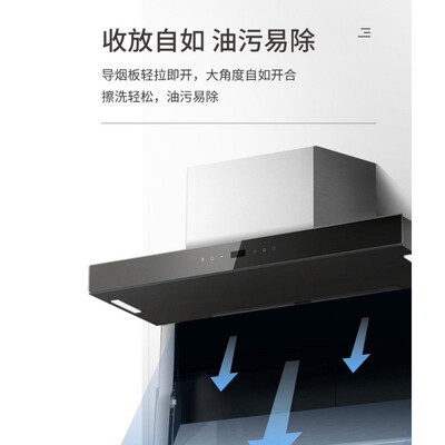 拥有20m³/min大吸力,无惧爆炒油烟,轻松吸走呛鼻烟尘,厨房好伴侣。导烟板易打开,开合角度大,易清洁好擦拭。