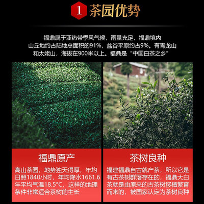 高山云雾间生长的福鼎白茶,其吸收自然养分,多饮用能有效提升状态,恢复活力。肥壮鲜嫩的茶叶,叶芽连枝没有老梗,洁净醇香。