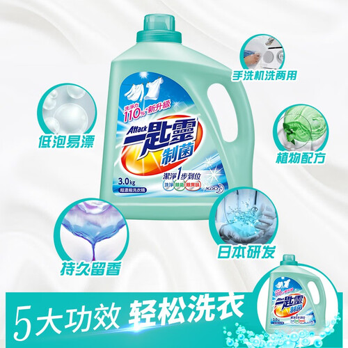 经日本科研技术研发,多效洁净成分组合,有效深层去渍,避免污渍附着。草本香氛,去除难闻异味,时刻清新好闻。