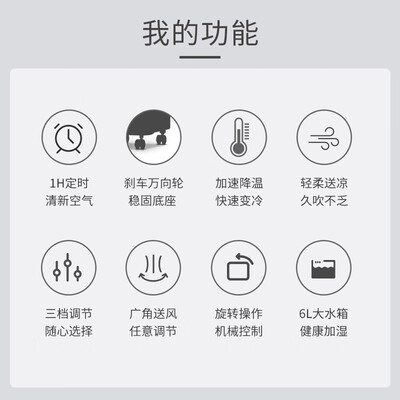 底部设计万向滚轮,移动更加便捷省力,助你灵活使用。配置六升大水箱,满足长时间制冷需求,减少加水频次。