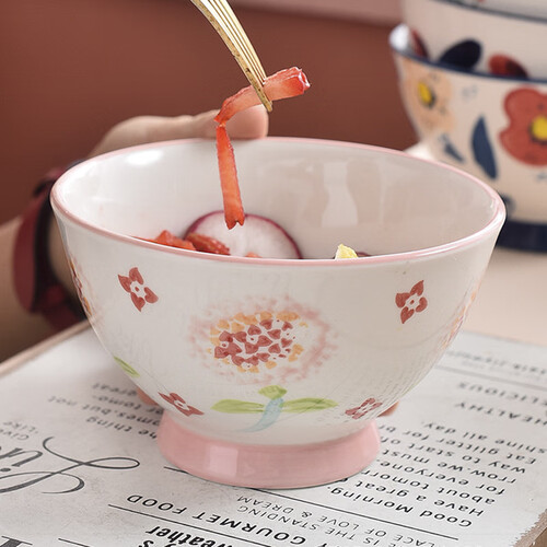 纯手工彩绘的精美图案,碗体看起来美观大方,让你从此享受高品质的生活。增高的底部设计,稳固贴合在桌面上。
