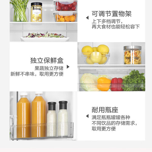 冰箱主体是富有质感的银色,表面镶嵌着智能调节控制面板,搭配时尚三开门组合,无论摆在哪里都能迅速提升家居格调。