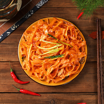 这款金百粟陕西宝鸡岐山擀面皮,选用陕西小麦高筋面粉做原料,经纯手工揉搓,表面白嫩光滑,口感柔软香辣。