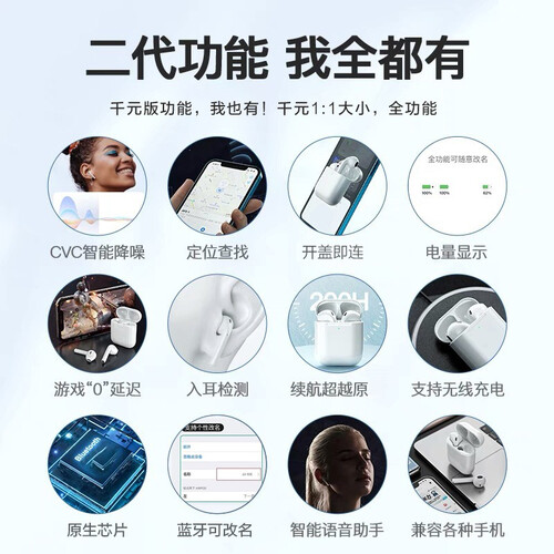 采用入耳检测设计,内置传感器,自动开启。具有自动配对的功能,开盖弹窗,一秒速连。