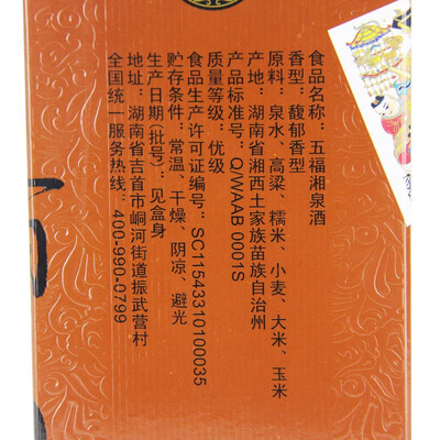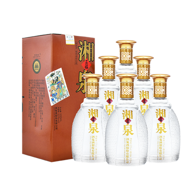 精选优质五谷粮品搭配湘西泉水,采用古法工艺酿造而成,再经洞藏陈酿,酒体醇厚清澈,入口馥郁浓香,回味悠长。