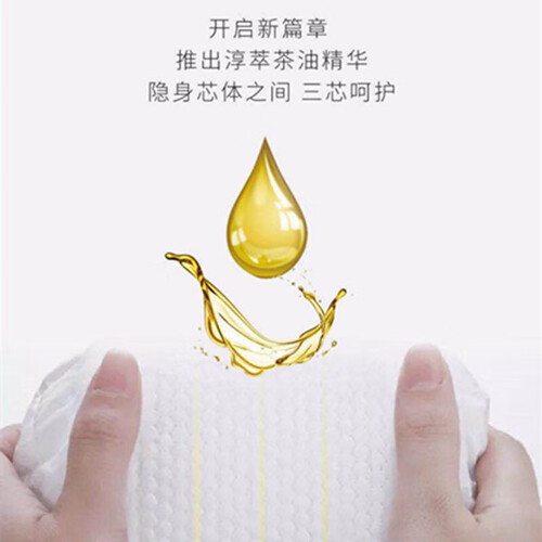萃取淳萃茶油精华,天然无添加,温和不刺激,舒缓红屁屁。0.2cm超薄芯体,薄如蝉翼,海量瞬吸,屁屁好干爽。