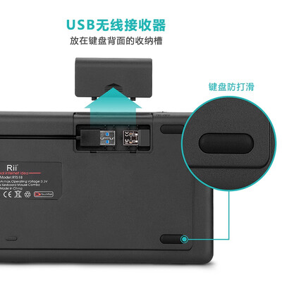 配置USB无线接收器,可放置在键盘背面的收纳槽中,防打滑。配三种彩色背光键盘,炫彩时尚,个性感十足。