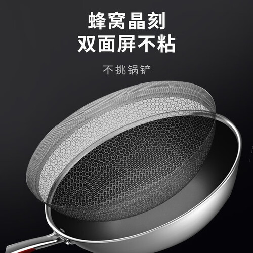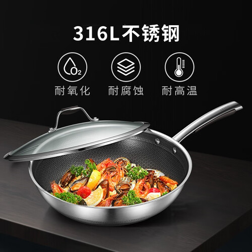 精选316不锈钢材质铸造,配合蜂窝晶刻技术,令炒锅拥有良好的抗磨损性能和耐腐蚀性能,可以用钢铲炒菜。