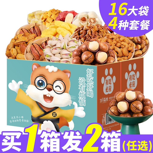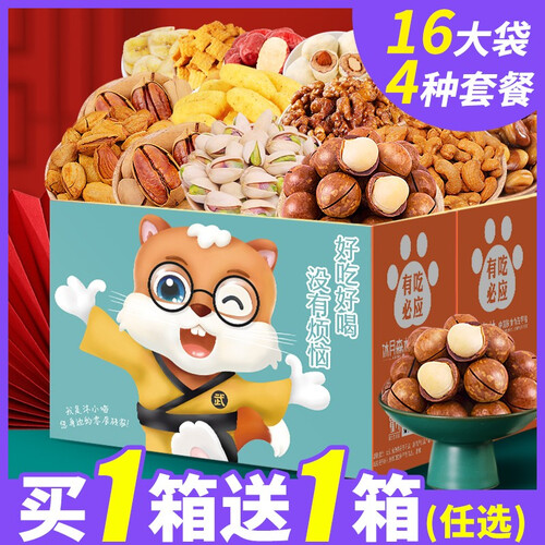 含有夏威夷果、兰花豆、多味花生等6种坚果,品类繁多,满足不同口感需求。手提礼盒包装设计,赠礼更方便提握。