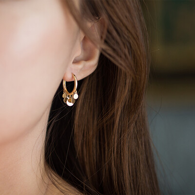 垂落的光面圆片,绽放闪耀的光芒,为耳畔增添灵动美感。光滑匀亮的表面,佩戴十分舒适。