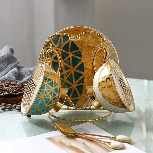欧式经典风格设计,高温烧制瓷质温润舒适,环保健康让生活充满惬意,手工描金工艺尽享高贵品质,人性化把手设计手感更舒适。