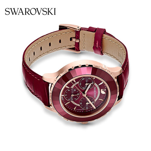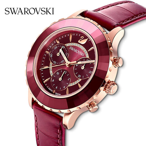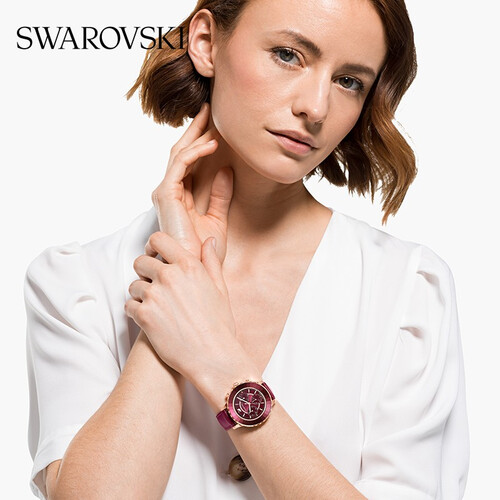 机械感满满的表盘,采用镂空的设计,层次感丰富。红色的切割仿水晶材质,搭配玫瑰金涂层,结合在一起带有深邃感。